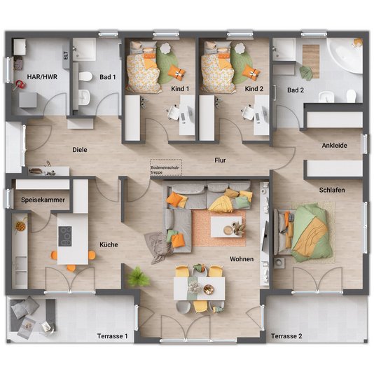 - zwei gleich große Kinderzimmer